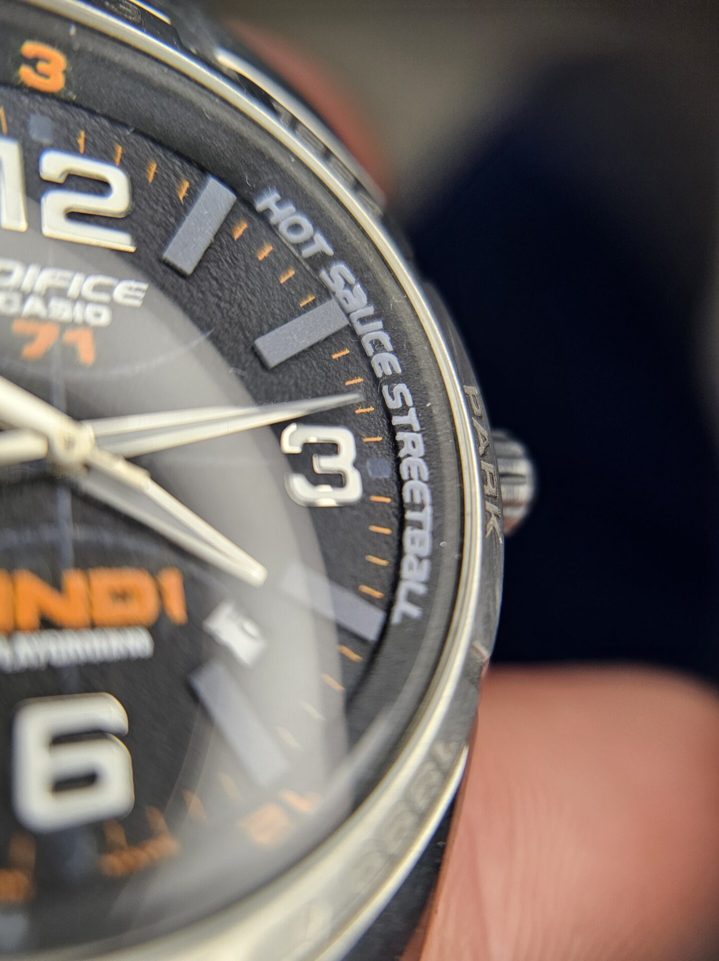 Louis, un ami de longue date et passionné de montres, m’a confié une de ses pièces les plus abîmées : une Casio Edifice marquée par le temps, avec boîtier rayé, vitre cassée, et bracelet déformé. Il m’a laissé carte blanche pour redonner vie à cette montre, tout en m’indiquant qu’un thème basket, et plus particulièrement celui de la célèbre Ligue de Street Basket AND1, lui tenait à cœur. Ce projet était donc un hommage à ses souvenirs d’adolescence et à une passion toujours intacte.