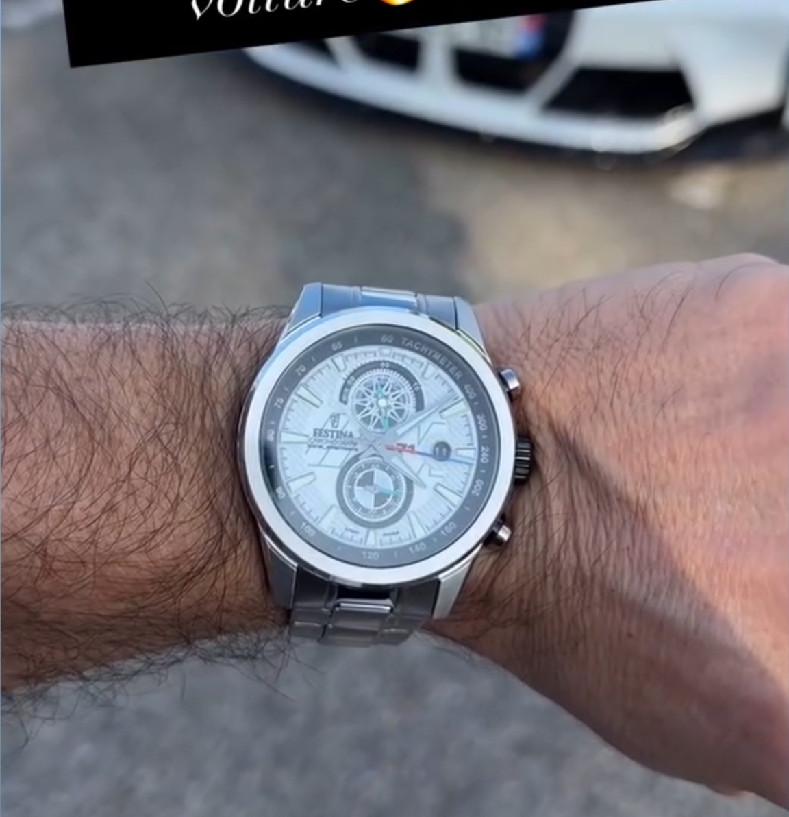 Chris a voulu une montre aussi marquée que sa BMW M4 G82 Competition, une pièce qui allie puissance, style et précision. Réalisée sur une base Festina, cette montre traduit parfaitement l’esprit Motorsport.