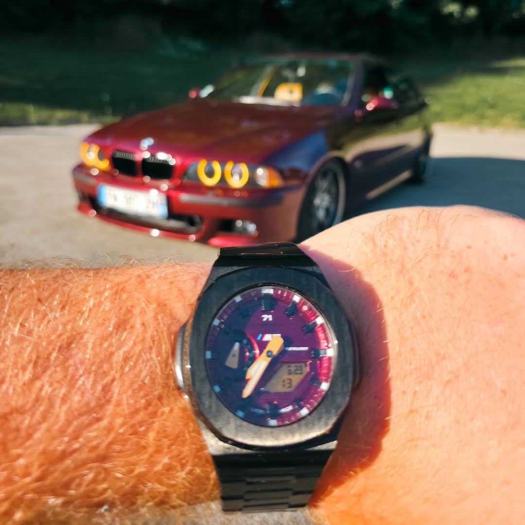 Dan, fier propriétaire d’une BMW M5 E39 dans la somptueuse teinte Bordeaux Royal Rot, a remporté le second prix lors de l’événement StarFobar Édition 2, qui célébrait les 10 meilleures voitures présentes. En tant que partenaire de l’événement, j’ai eu l’honneur de créer une montre pour Dan, qui a bénéficié d’une super réduction en récompense de son travail exceptionnel sur sa voiture. Cette montre, à l’image de sa M5 E39, est un véritable hommage à son attention au détail et à son sens du perfectionnisme.