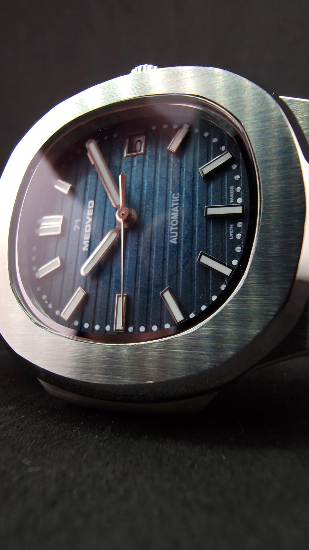 Pour cette création, Nico voulait une montre simple mais redoutablement efficace. L’idée : un design épuré, porté par un bleu dégradé et un symbole fort, l’ours Medved en russe, pour rendre hommage à ses origines.