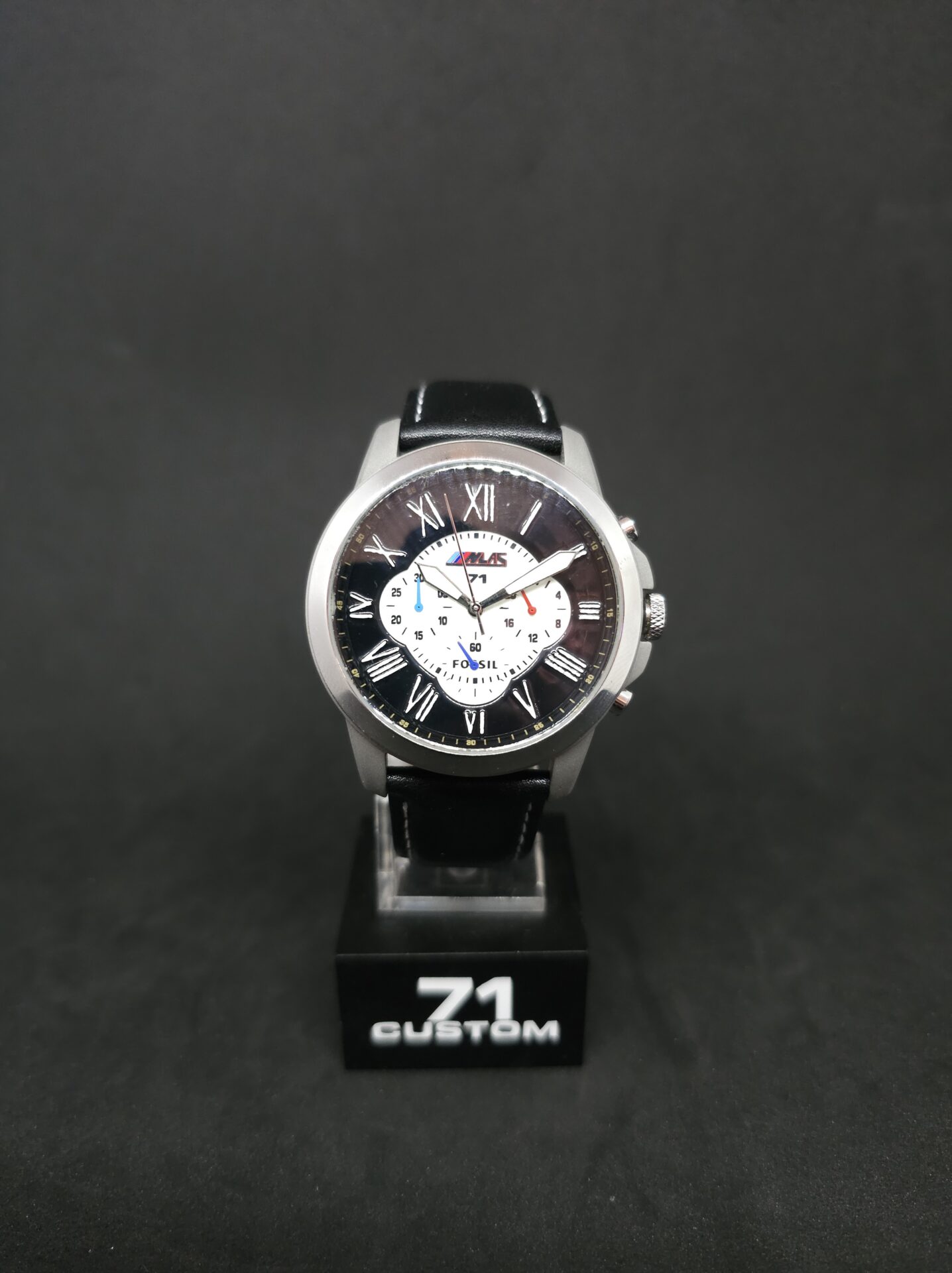 Nicolas m’a confié sa Fossil FS4735, une montre achetée par nécessité lors d’un voyage à Miami. Oubliant sa montre habituelle avant d’embarquer, il a décidé d’en acheter une à bord de l’avion, pour ne jamais être sans montre. Bien qu’elle ait accompagné de super souvenirs, cette montre ne correspondait pas à son style, et il avait fini par la laisser de côté. Avec ce projet, il m’a donné carte blanche pour transformer cette montre et en faire une pièce qui lui corresponde véritablement.