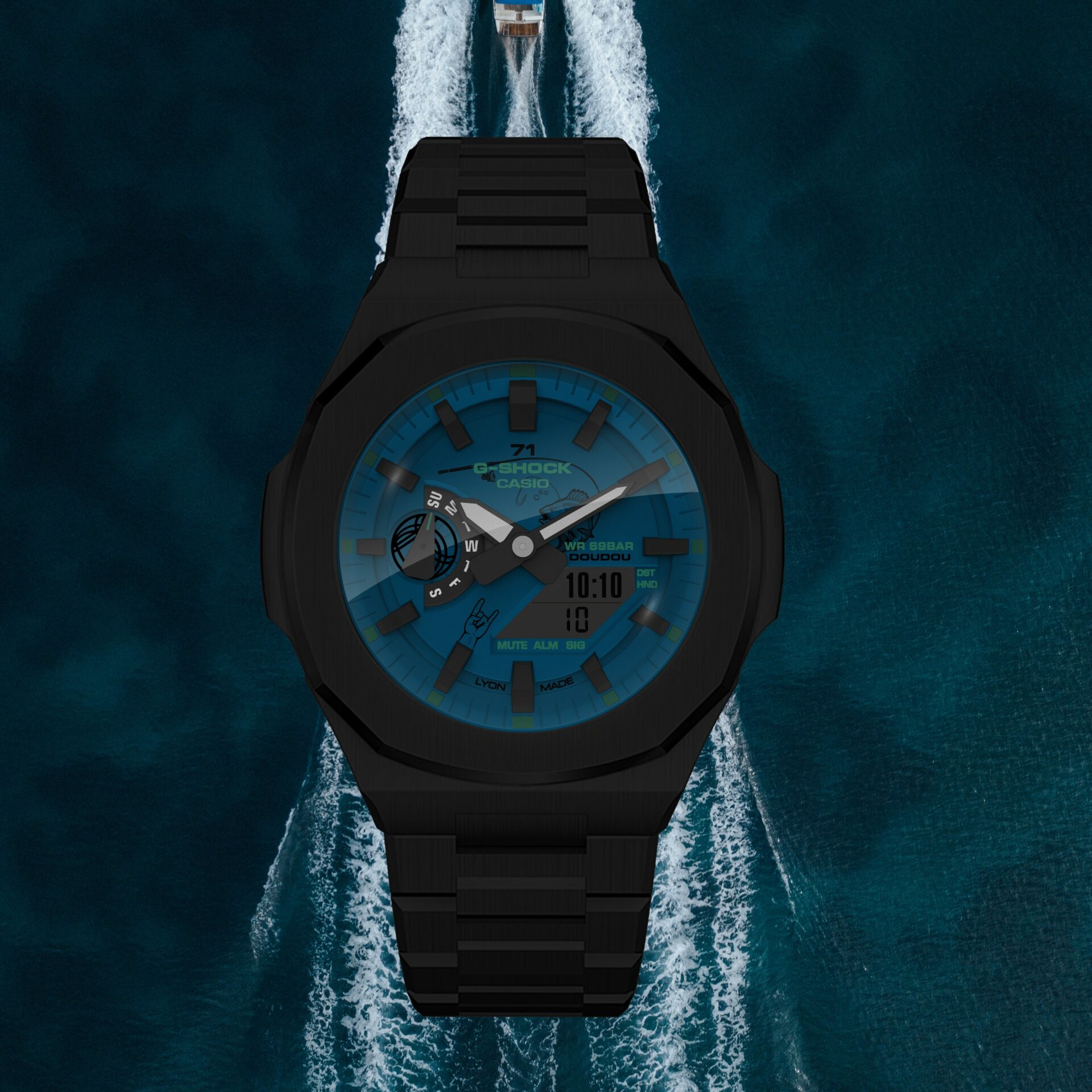 Louis a voulu offrir un cadeau spécial pour l’anniversaire de l’un de ses amis, en s’inspirant de son amour pour la pêche et la mer. Avec carte blanche et un thème bien défini, cette montre a été conçue pour refléter à la fois ses passions et des éléments personnels.